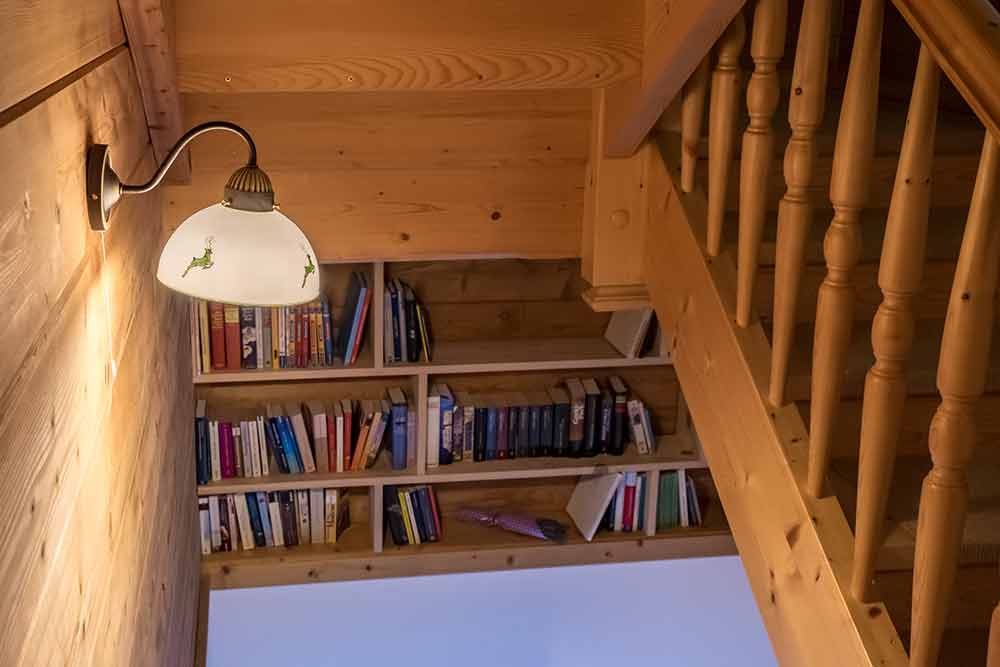 Sie können sich in einem von vier Schlafzimmern des Hauses zurückziehen. Diese sind zweimal mit einem Doppelbett und zweimal mit zwei Einzelbetten ausgestattet. Die Betten (Betten 180x200 cm, oder 90x200 cm, alle ohne Fußteil) wurden aus dem für seine wohltuende Wirkung bekannten Zirbenholz gezimmert. Für Ihr angenehmes Bettgefühl sorgen hochqualitative mittelharte Matratzen und feinste österreichische Bettwäsche. Zu einem der Schlafzimmer gehört ein Balkon mit Sitzbank, wo Sie die lang ersehnte Ein-, bzw. Zweisamkeit bei einem atemberaubenden Panoramablick finden können.