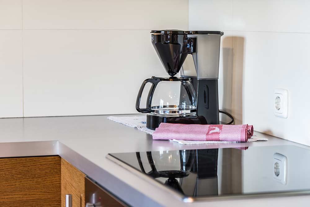 Die geräumige Küche mit großem Kühl- und Gefrierschrank, Herd und Backofen, Wasserkocher, Kaffeemaschine, einer Auswahl aus Töpfen, Pfannen, sowie Wein- und Wassergläsern, sehr viel Arbeitsfläche sowie Porzellangeschirr im Landhausstil ermöglicht Ihnen eine optimale Selbstversorgung auch über längere Zeiträume.