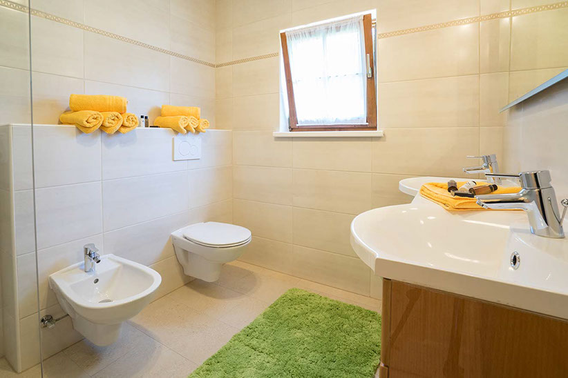 Die zwei Bäder des Hauses verwöhnen Sie mit einer sehr großen Duschkabine und einem doppelten Waschbecken. Beide sind mit Haartrockner und WC ausgestattet. In einem der Bäder werden Sie auch ein Bidet vorfinden. Es gibt auch eine dritte separate Toilette. Wir haben für Sie jeweils ein Handtuch und ein Badetuch, sowie Bodylotion, Duschgel und Haarshampoo für den ersten Bedarf vorbereitet.